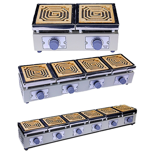 Basierend auf dem Joule’schen Gesetz erzeugt der elektrische Brenner Wärme, wenn Strom durch einen auf einem Hochtemperatursubstrat gewickelten Widerstandsdraht fließt. Der Draht erwärmt sich schnell und überträgt die Energie durch Strahlung und Wärmeleitung an die Oberfläche der Heizplatte. Der Benutzer kann die Spannung und Temperatur über den Thermostatknopf an der Vorderseite einstellen, um die Leistung und Temperatur präzise zu regeln. Die geneigte, geschlossene Blende schützt die internen Schaltkreise und ermöglicht eine ergonomische Überwachung und Einstellung.